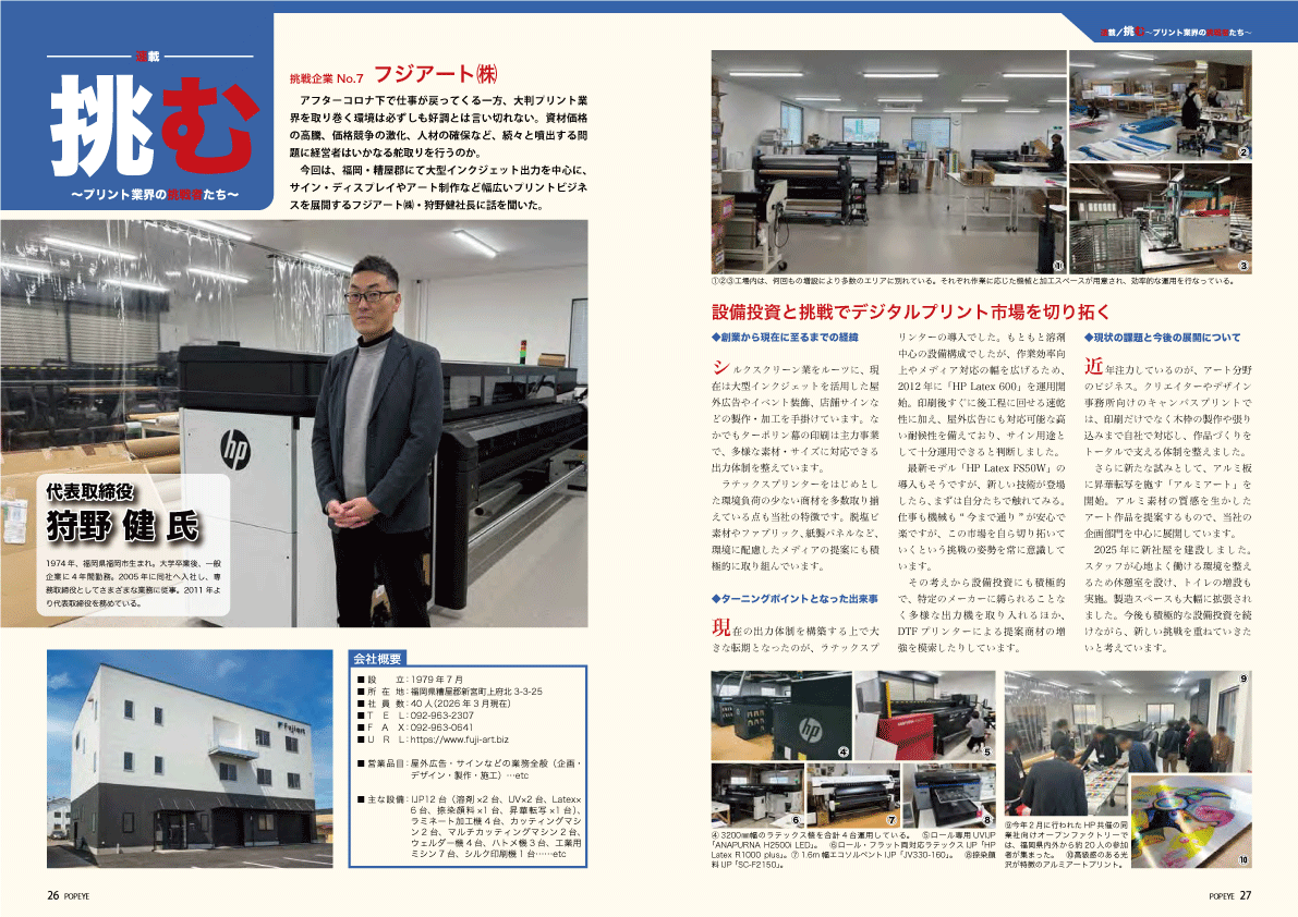 連載企画『挑む 〜プリント業界の挑戦者たち〜』の中で、代表取締役・狩野健のインタビューとともに、弊社の歩みや最新の取り組みが詳しく紹介されています。